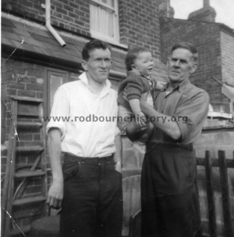 Reg Maisey with Son & Grandson ID Number – 1265 Image No – img623 Subject – Dave Maisey, Grandson Paul Maisey & Reg Maisey Date – circa 1962 Donor – WarburtonBeryl House No/Name – 61 Street – Montagu Street Location -Back Garden